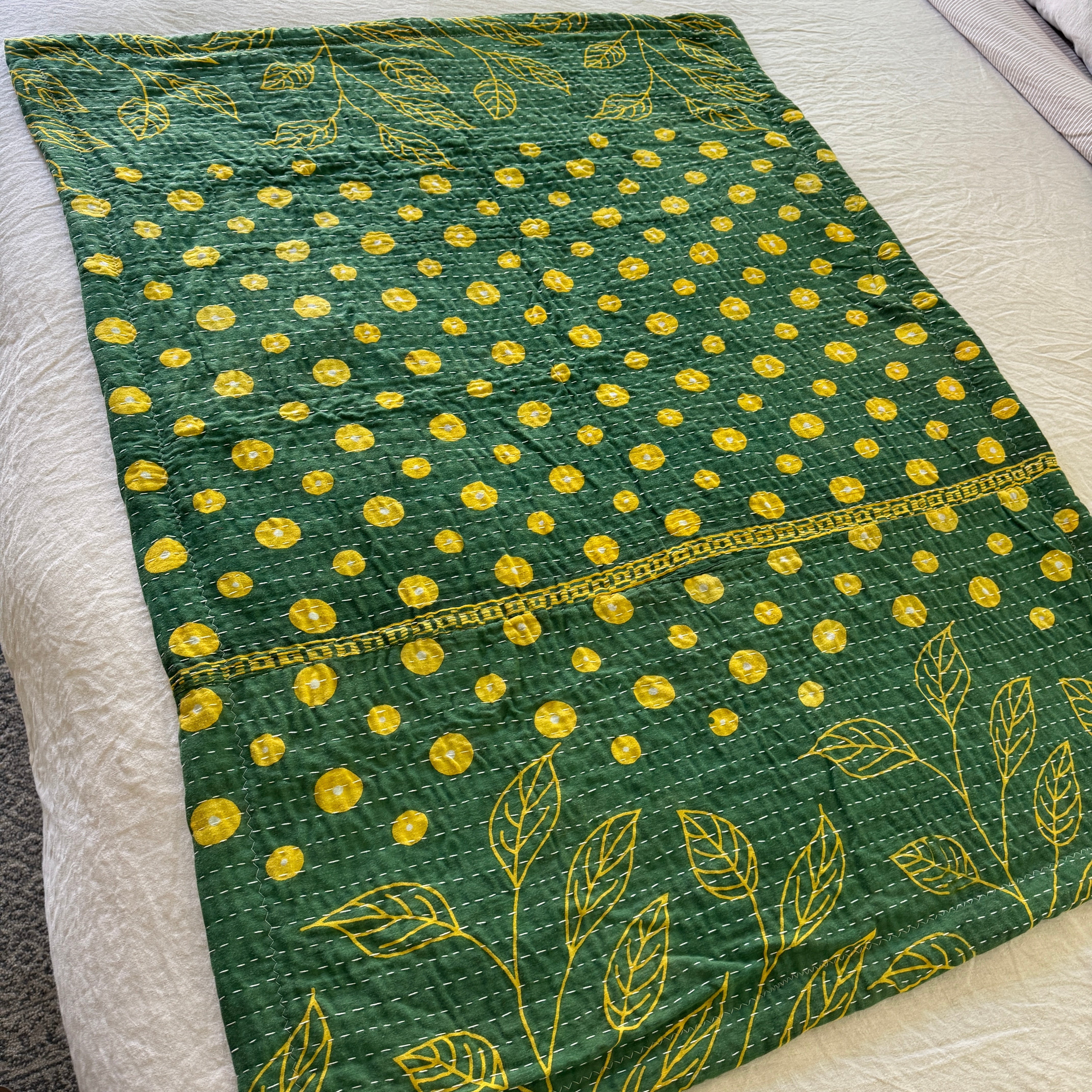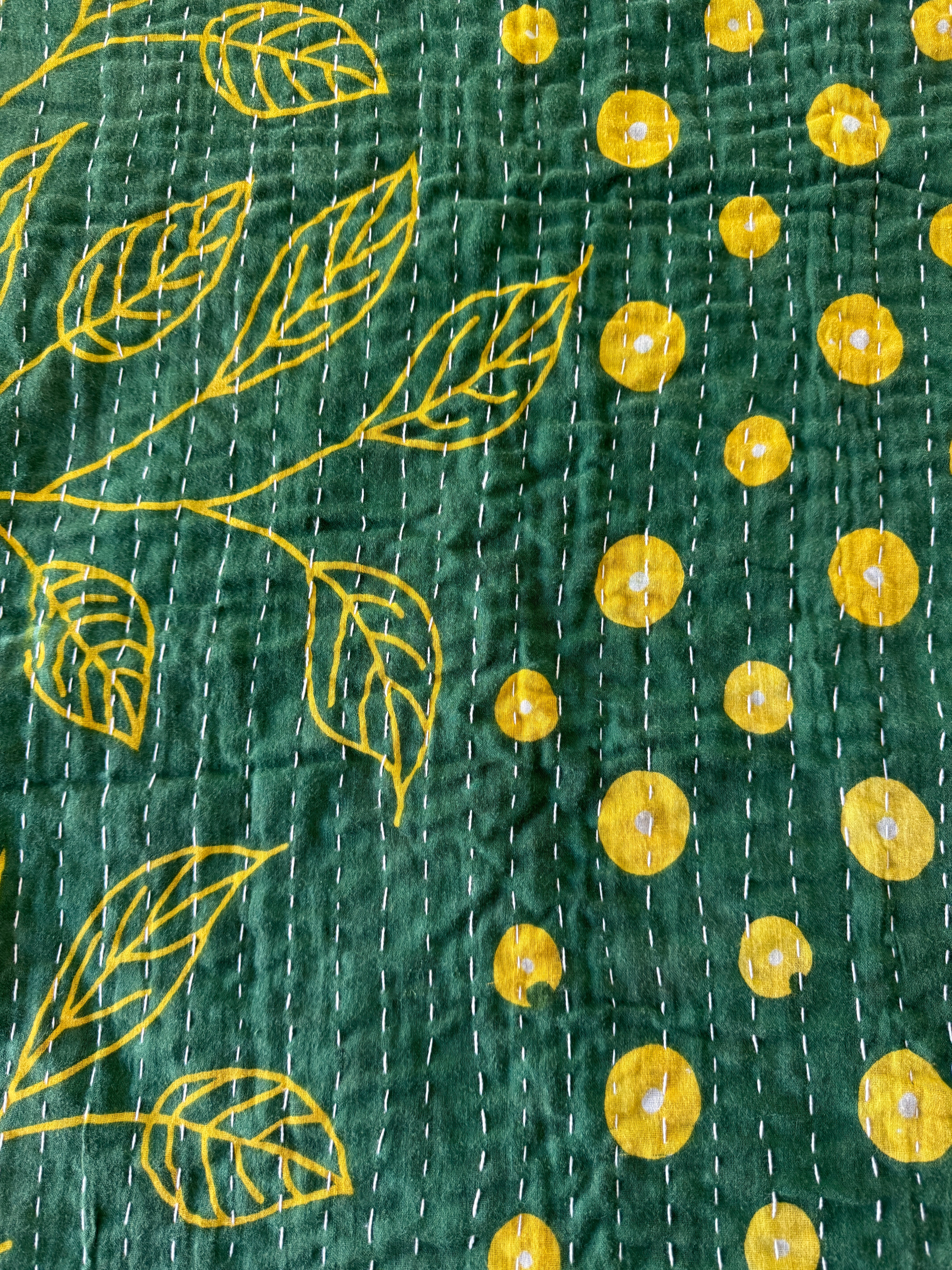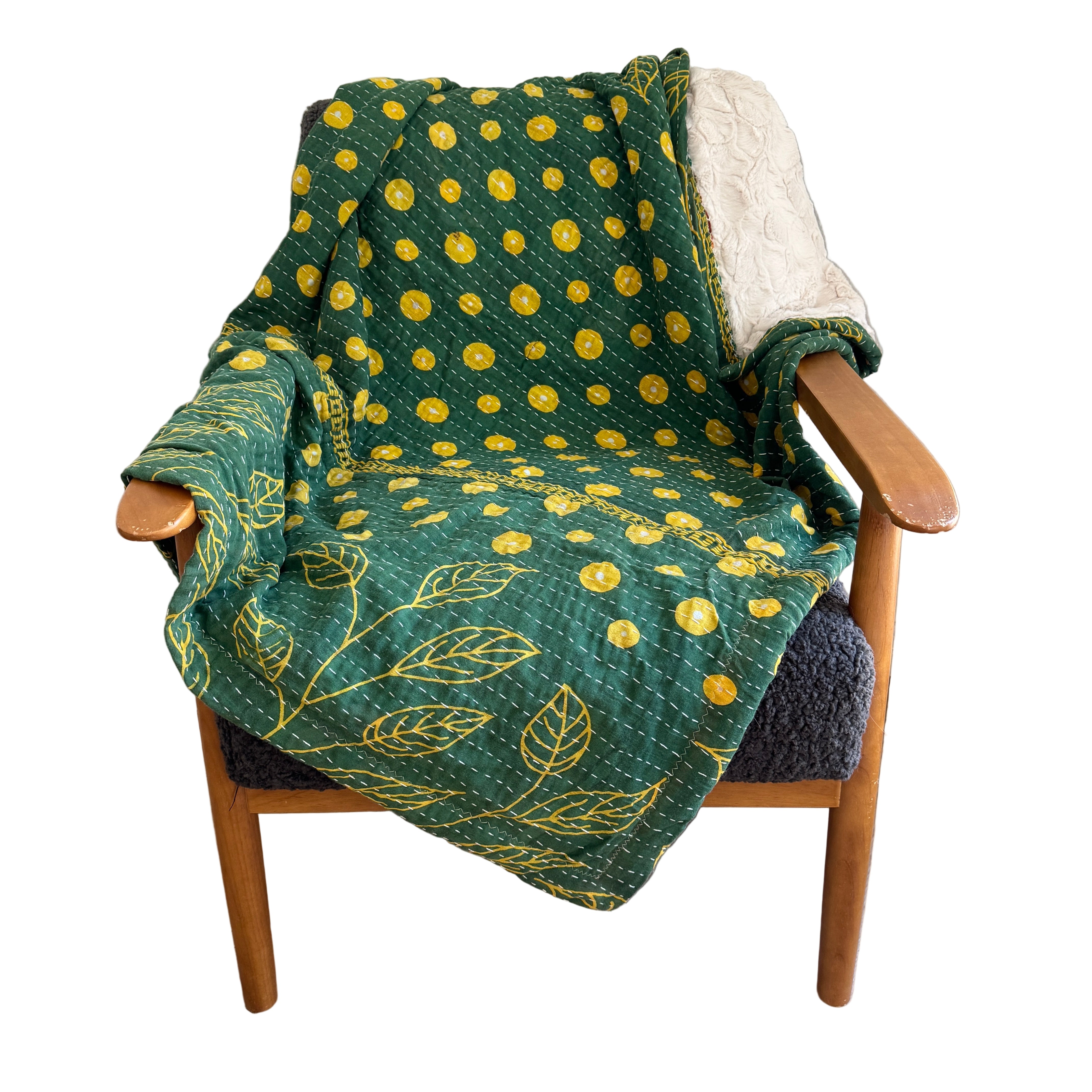 Mini Vintage Kantha Quilt with Minky Faux-Fur - Spritz